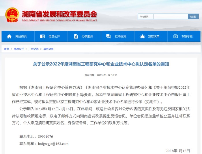 近日,湖南省發展和改革委員會公示了湖南省省級企業技術中心和工程研究中心評估結果,公司成功上榜,實現了繼省級企業技術中心后,又一創新平臺的突破。